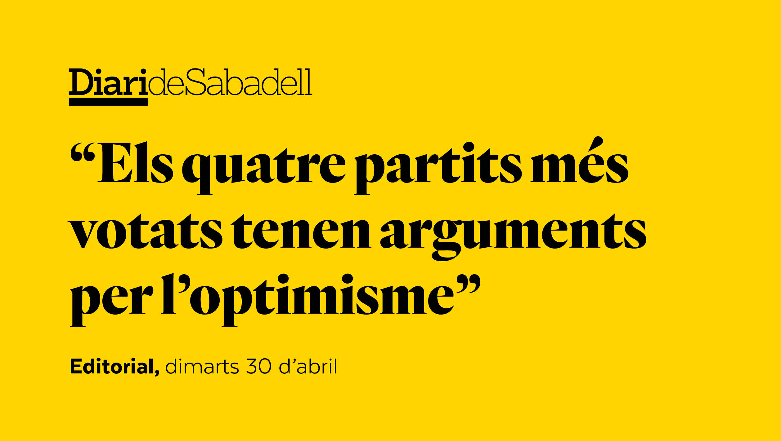 Seria un error pensar que els resultats a Sabadell d’aquestes eleccions generals es repetiran a les eleccions municipals d’aquí a menys d’un mes. Però de la mateixa manera, amb tan poca distància entre uns comicis i els altres, també seria un error pensar que no influiran les tendències que s’han vist aquest 28-A. Els quatre partits més votats a Sabadell tenen arguments de sobres per afrontar les eleccions municipals amb optimisme.