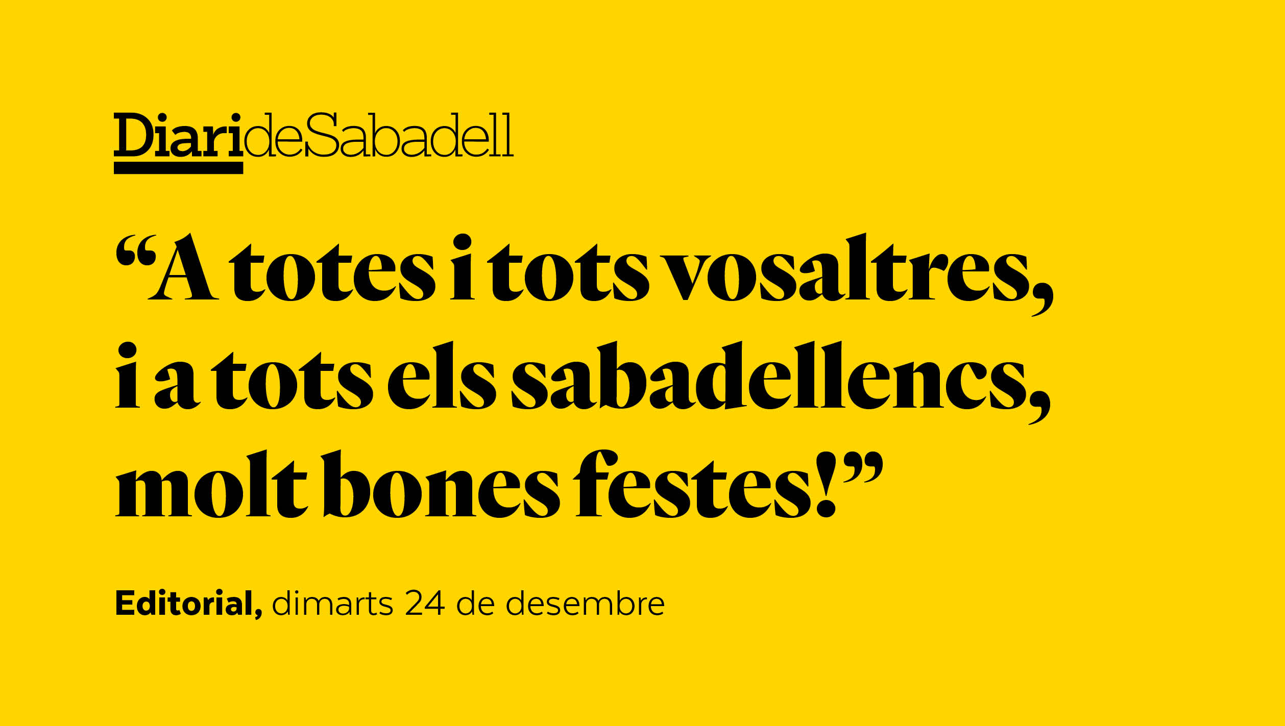 Com els ‘lloros’, hi ha desenes de persones darrere d’aquesta tradició nadalenca. Tots ells es mereixen el nostre reconeixement perquè aconsegueixen que la celebració sigui única a la nostra ciutat. Tampoc no oblidem aquests dies festius les persones que fan possible que els serveis públics essencials de Sabadell segueixin funcionant: metges, infermers, bombers, policies... dones i homes que no podran celebrar el Nadal com la resta i que vetllen per la nostra salut i seguretat. Un sentit missatge per a tots ells, el mateix que enviem a les persones que passaran les festes en solitud o lluny de casa. A totes i tots vosaltres, i a tots els sabadellencs, molt bones festes!