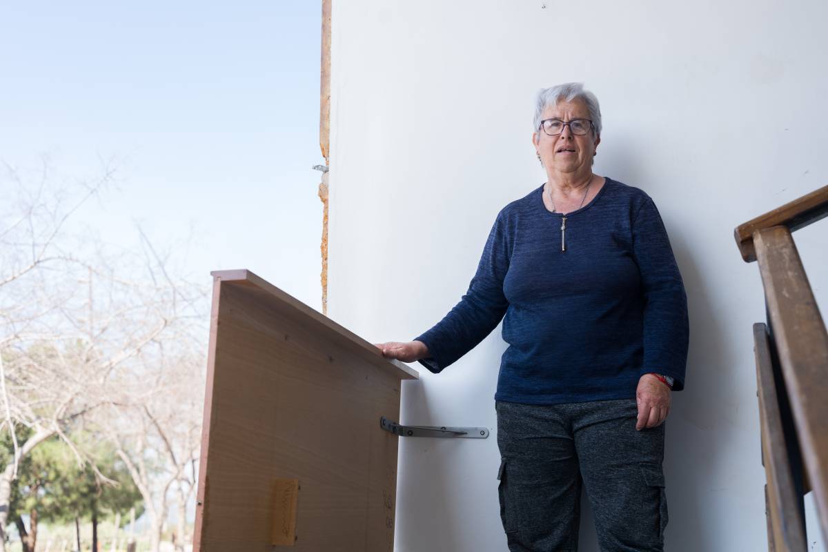 La solució que van improvisar no cobreix la façana: malgrat que es va plantejar cobrir el forat amb lones, finalment van optar per col·locar una fusta a mode de barana provisional. Aquesta protecció és mínima i deixa completament exposat l’interior del pis –la zona de les escales que connecta diferents plantes–, de manera que l’escala continua oberta a l’aire lliure i totalment desprotegida. La família assegura que conviuen amb aquesta situacó des del dia del temporal, mentre esperen que la nova estructura arribi i estigui instal·lada.