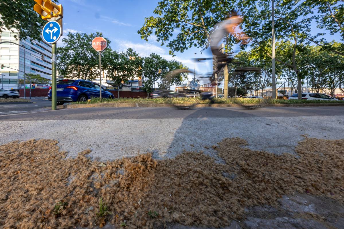 El vel de borrissol que que cau dels plàtans d’ombra i que salpebra carrers i places de Sabadell s'ha convertit en una de les imatges d'aquesta primavera. La ciutat ha vist com una fina catifa groguenca s’acumulava als principals carrers, mentre els veïns alertaven de picors a la gola i als ulls, sobretot quan la brisa remou la borra. "No puc sortir de casa sense mascareta. No és Covid, són els 'plataners', que fa dies que em generen unes molèsties molt evidents", exposa la Montse Ortiz, veïna de la Creu Alta.